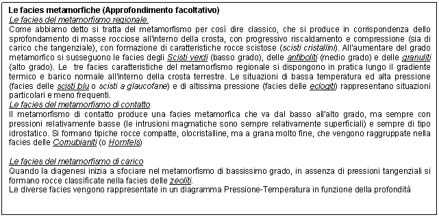Rocce metamorfiche - si producono attraverso processi di profonda alterazione strutturale di rocce preesistenti legati a modificazioni delle condizioni termodinamiche (in genere forti aumenti di temperatura e pressione).