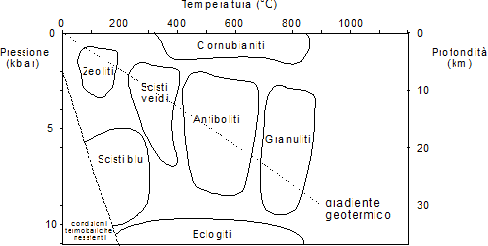All'interno di ciascuna facies si esegue poi una classificazione in base alle caratteristiche mineralogiche della roccia. A titolo esemplificativo diamo alcune sequenze di trasformazioni metamorfiche, facendo riferimento ad alcune rocce di partenza particolarmente diffuse.