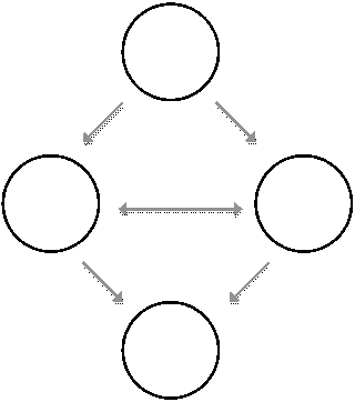 A double-scope network has inputs with different (and often clashing) organizing frames as well as an organizing frame for the blend that include parts of each of those frames and has emergent structure of its own. In such networks, both organizing frames make central contributions to the blend, and their sharp differences offer the possibility of rich clashes. Far from blocking construction of the network, such clashes offer challenge to the imagination: indeed, the resulting blends can be highly creative. (131)