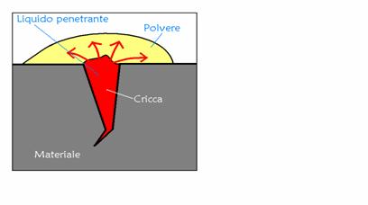 applicata la polvere. Il liquido all'interno della cricca, o della deformazione