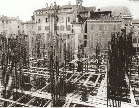 I tecnici bresciani erano particolarmente incuriositi e con aria indifferente sbirciavano fra le assi dell'impalcatura di recinzione del cantiere; uno scavo di 21.000 metri cubi, un impasto di calcestruzzo di 18.000 metri cubi, una gabbia di cemento alta più di sessanta metri, rivestita da un paramento in mattoni speciali di 6.000 metri quadrati, affogava i quindicimila quintali di ferro della struttura portante calcolata dal milanese Luigi Compagna con la consulenza di una vera e propria ce autorità in materia, il professor Dannuso del Politecnico di Milano.