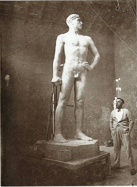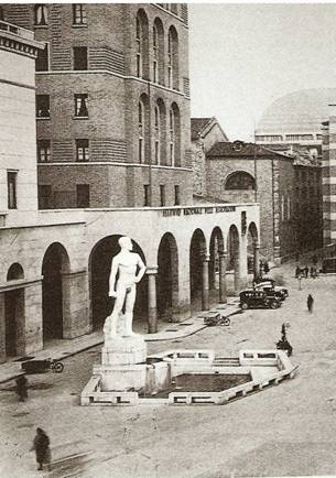 La fortuna della statua durò davvero poco: dalle ovazioni di Mussolini, il quale acclamava la statua come il simbolo dell'era fascista, si passò alle critiche del vescovo Gaggia, che in una lettera diffusa ai parroci raccomandava di evitare di gironzolare per la cosiddetta piazza per evitare la vista del giovanotto nudo che esibiva le toniche forme maschili, anche se coperte con una foglia fico in alluminio. Nel 1934 poi, il presidente del "Gruppo amici dei monumenti", Arnaldo Gnaga, avanzava, fra varie altre istanze inerenti a elementi artistici e architettonici su cui intervenire, una richiesta drastica, la rimozione del Colosso dalla piazza, abolendo o diversamente e più decorosamente sistemando la fontana.