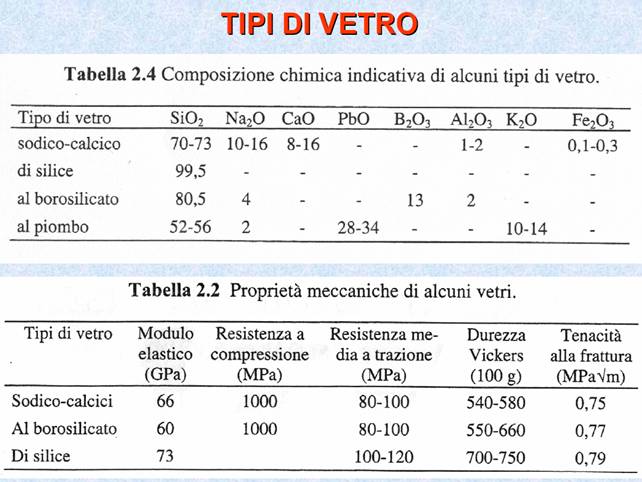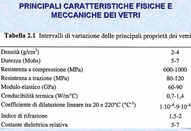 PRINCIOPALI CARATTERISTICHE FISICHE MECCANICHE DEL VETRO