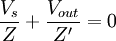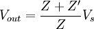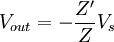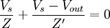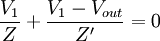 dove I,I' sono le correnti che attraversano le due impedenze e Iout è la corrente dell'uscita, vediamo che tenendo presente che V1 = V2 e quindi I = I':