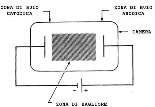 Fig. 1: Rappresentazione schematica di un plasma dc.
