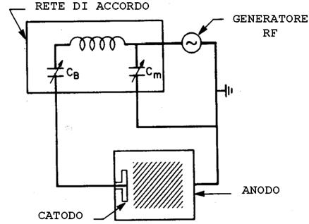 che attraverso il condensatore con cui il catodo è accoppiato al generatore RF