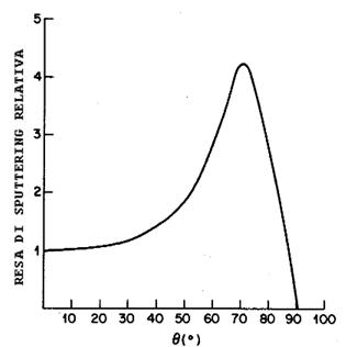 Un importante aspetto dello ion etching è che S dipende dall'angolo con cui gli ioni raggiungono il substrato (Fig. 2).