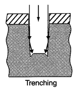 Il trenching consiste in un aumento della velocità di attacco nelle immediate vicinanze delle pareti della maschera: esso è il risultato di due effetti.