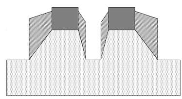 Si assuma che (1) la velocità di deposizione sulle superfici verticali sia costante; (2) il materiale depositato venga attaccato in modo puramente anisotropo alla stessa velocità del fondo dello scavo; (3) l'attacco e la deposizione, che sono simultanei, possano essere approssimati come un susseguirsi di passi di attacco e deposizione di durata infinitesima; (4) sia lecito usare un modello bidimensionale di una sezione trasversale. Questo modello semplificato predice scavi a pareti inclinate sui quali viene rideposto uno strato trapezoidale (Fig. 3).