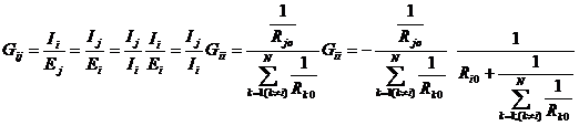 Le intensità delle correnti I ,I ,.,IN (dette anche correnti di linea) possono essere ottenute come somma dei contributi dei singoli generatori E ,E ,.,EN (di valore arbitrario); tali contributi, trattandosi di rete lineare, sono proporzionali a valori E ,E ,.,EN ; i coefficienti di proporzionalità sono omogenei a conduttanze e saranno indicati con Gjk, dove l'indice j si riferisce alla linea (al polo) e k al generatore di tensione stellata; per j=k tale coefficiente ha il significato ordinario di conduttanza equivalente ai morsetti del generatore k (quando gli altri generatori sono spenti) e, pertanto, prende il nome di conduttanza propria o autoconduttanza del polo j; nei casi in cui j è diverso da k, si parlerà di conduttanza mutua tra i poli j e k.