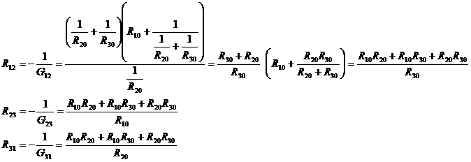 In altri termini, vi è una corrispondenza biunivoca tra gli elementi Gjk di mutua conduttanza tìdi un N-polo e le resistenze Rjk di un poligono completo di resistori. Quindi possiamo "trasformare" un N-polo qualsiasi in un poligono completo di resistori di N vertici[2].