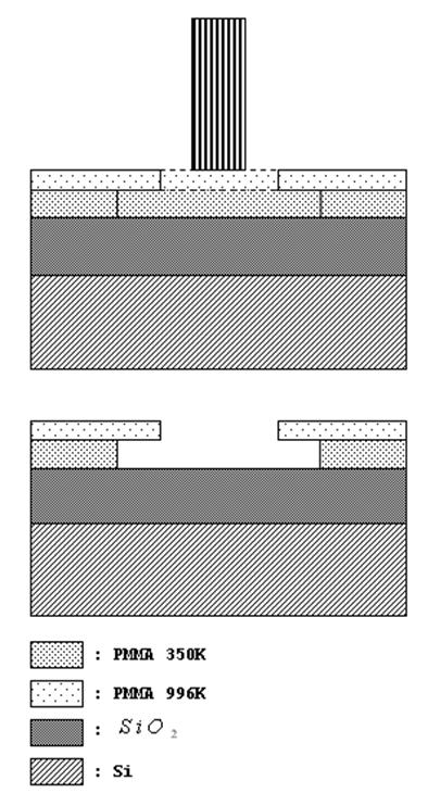 Il secondo strato è di resist PMMA di peso molecolare medio 996000 al 6% in peso in anisolo, che viene steso in questo modo: