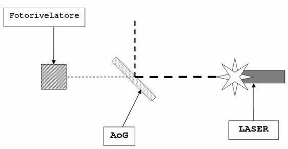 Fig. 1: Rappresentazione schematica della configurazione per la misura dei coefficienti di trasmissione degli specchi AoG I, II e III.