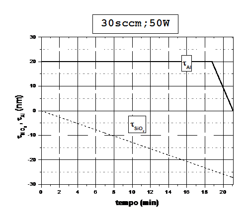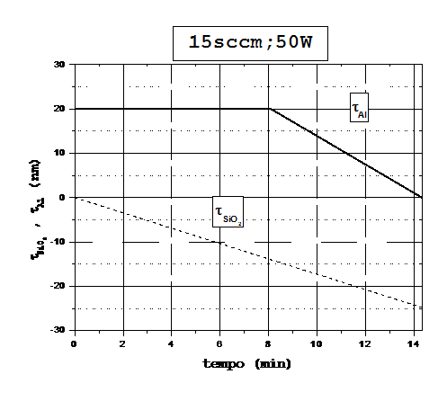 Per gli attacchi a (15sccm;50W) e (30sccm;50W), per i quali la regolarità delle superfici attaccate è stata giudicata soddisfacente, si è stimato il tempo di attacco minimo per cui la maschera di Al sia completamente rimossa.