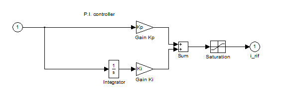 In ingresso abbiamo la corrente di riferimento e la corrente reale che tira fuori il motore, in uscita il comando da inviare all' attuatore .
