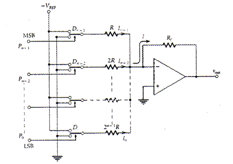 In-1=Pn-1(-VREF/R) ; In-2=Pn-2(-VREF/2R) ; ; I0=P0(-VREF/2n-1R)