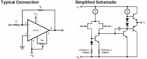 L'alimentazione dell'operazionale era di ±5V perché l'integrato LF351 ha bisogno di un'alimentazione duale.
