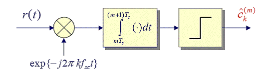 La variabile di decisione sul simbolo della sottoportante numero k è dunque (r(t)=segnale ricevuto)