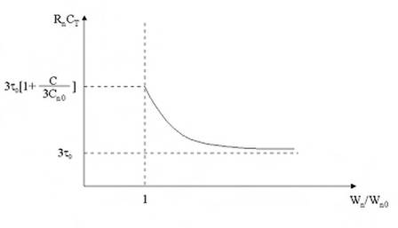 Per valutare come bisogna scegliere Wn per minimizzare i ritardi basta analizzare l'andamento della costante di tempo in funzione di Wn (Fig. 1.22).