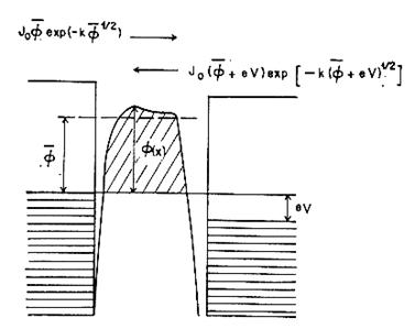 Il modello che è stato adottato in questo lavoro di tesi per descrivere il passaggio di corrente attraverso una barriera e quello sviluppato da J. G. Simmons (1963). A lui è infatti dovuta la prima teoria unificante per il tunneling attraverso una barriera di forma generica.