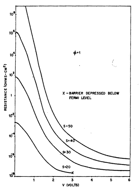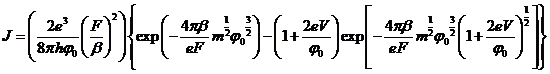 I primi a compiere uno studio teorico su questo fenomeno sono stati A. Sommersfeld e B. Bethe (1933), che hanno considerato il caso di tensioni applicate molto basse e molto alte, derivando le equazioni per la densità di corrente che attraversa una barriera rettangolare. L'inclusione del potenziale immagine nella loro teoria rendeva le equazioni irresolubili analiticamente. In seguito, R. Holm e B. Kirschstein (1935) hanno esteso la teoria al caso di tensioni intermedie ed ottenuto una soluzione analitica alle equazioni nel caso di potenziale immagine approssimando la barriera con una parabola, approssimazione che è stato mostrato essere scarsa.