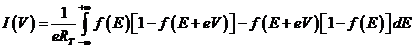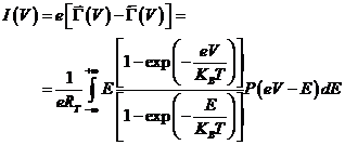 Il dislivello tra i livelli di Fermi dei due lati della giunzione viene considerato nel termine eV nell'argomento della seconda Fermi-Dirac. Il secondo termine è analogo al primo, ma descrive il processo inverso.