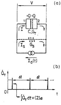 Si consideri ora una giunzione tunnel polarizzata da una corrente I costante e misuriamo la caduta di tensione ai suoi capi con un voltmetro ad alta impedenza: l'effetto di un evento di tunneling è che Q, continua, diminuisca della quantità discreta e.
