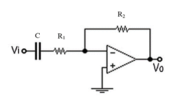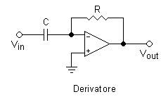 Lo schema elettrico rappresenta l'amplificatore derivatore non limitato, dove la relazione tra tensione d'uscita e quella di ingresso è: