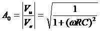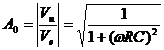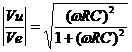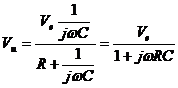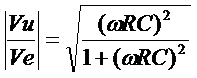 Dal modulo si ricava che per frequenze basse e tali che 2 π f R C « 1, il rapporto Vu / Ve rimane sensibilmente costante e uguale a 1 (cioè l'uscita è uguale in ampiezza all'ingresso), ma non appena la frequenza aumenta in modo tale che la quantità 2 π f R C incomincia ad assumere valori non trascurabili rispetto l'unità, il rapporto Vu / Ve incomincia a decrescere. I limiti sono i seguenti: per f = 0 è Vu = Ve, per f → ∞ è Vu = 0.