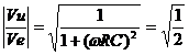 La tensione Vu di uscita è funzione della frequenza del segnale applicato all'ingresso, secondo la legge: