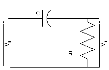 Si consideri adesso il circuito RC di figura nel quale la tensione di uscita viene prelevata ai capi di R. Si dimostra che questa configurazione del circuito RC privilegia la trasmissione delle alte frequenze.