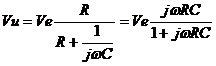Quindi se un segnale di ingresso ha frequenza variabile il circuito RC di figura fa passare le frequenze basse e taglia quelle alte, cioè si comporta da filtro passa-basso. In altre parole, prelevando l'uscita ai capi di C, si ha una risposta Vu = Ve e φ = 0 per frequenze basse tali che 2 π f R C « 1, mentre per frequenze man mano crescenti, la tensione di uscita si riduce in ampiezza fino a quasi annullarsi, mentre si va generando un ritardo di fase di Vu rispetto Ve, che da 0° va crescendo fino a -90°. Dalle formule si ricavano i grafici sopra riportati che prendono il nome di Curva di risposta del filtro Passa-Basso.