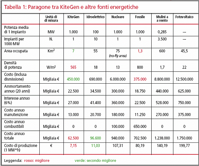 Da notare che le torri eoliche hanno bisogno di essere distanziate l'una dall'altra per evitare che interferiscano fra di loro diminuendo la resa totale e occuperebbero quindi un'area a terra totale di più di 40 Km². La centrale Kite Gen, compresa una fascia di rispetto tutt'attorno, occupa circa 5 Km².