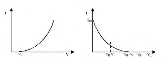 Quando il segnale d'ingresso passa al valore Vdd il transistore funziona nella regione di pinch-off. La caratteristica i-v è quella mostrata in Figura 1.12. A noi, comunque, interessa l'andamento della tensione vC per la valutazione di tplh