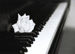 seggiolino, posa un pentagramma sul pianoforte disposto di fronte a lui e