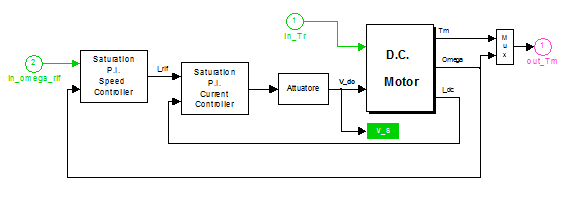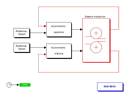 All'interno del blocchetto Azionamento superiore si trova il blocchetto del motore per la descrizione del quale si rimanda al paragrafo 1.2.1 ed 1.2.2, con i relativi blocchetti per il controllo di velocitą e corrente per la trattazione dei quali si rimanda al capitolo relativo vedi Figura 6.