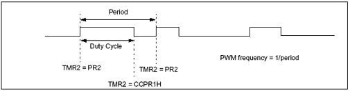 Uno dei componenti che è indispensabile per pilotare un motore in continua è PWM (Pulse Width Modulation). Un segnale PWM (ovvero modulazione a variazione della larghezza d'impulso) è un'onda quadra di duty cycle variabile che permette di controllare l'assorbimento di un carico elettrico (nel nostro caso il motore DC), variando (modulando) il duty cycle.