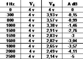 I valori accettabili della tensione di uscita sono quelli ottenuti per valori della frequenza compresi tra 0 Hz e la frequenza di taglio, che come detto , vale 1590 Hz (valore misurato); gli altri valori ottenuti per frequenza maggiore della frequenza di taglio non sono accettabili, per cui si dice che non passano.