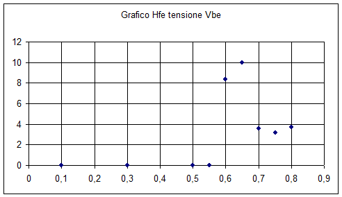 Il valore Hfe è il rapporto tra la corrente di collettore e la corrente Ib di base, esso rappresenta il guadagno in corrente continua.