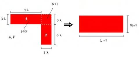 Nel caso la struttura sia ancora più complessa, è possibile utilizzare degli algoritmi semplificati per avere una stima di N. L'algoritmo più semplice si basa sulla possibilità di sfruttare i parametri necessari a calcolare le capacità, quali sono l'area ed il perimetro. Dato il nostro elemento di interconnessione, consideriamo una sorta di rettangolo equivalente, di dimensioni L x W, che ha la stessa area e lo stesso perimetro della nostra interconnessione, ovvero: