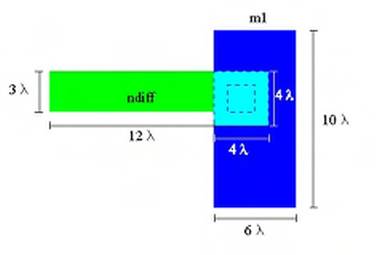 Fig. 1.16 - Interconnessione mediante una diffusione:sezione del layout