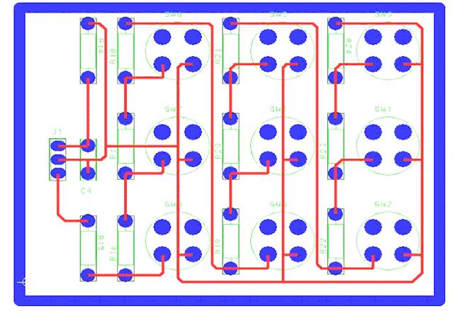 Come detto precedentemente, la tastiera è dotata di 9 tasti, ognuno accoppiato ad una certa resistenza di valore crescente rispetto a quella immediatamente precedente. (partitore resistivo)