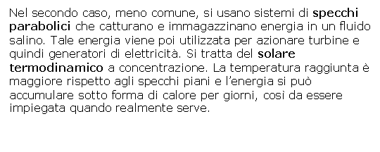 Gli impianti termodinamici sono ideali per la produzione di elettricità su larga scala, rimpiazzando così le centrali termiche convenzionali senza cambiamenti della struttura della rete. Essi sono già presenti in California e in Spagna, ed entro il 2009, anche a Siracusa entrerà in funzione una centrale di questo tipo.