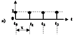 Nelle sequenze impulsive (fig.4.2) non esistono livelli che non siano basi degli impulsi. In realtà, le basi hanno la sola funzione di distanziare fra loro gli impulsi, che sono i soli valori significativi della sequenza e rappresentano gli istanti in cui gli eventi vanno presi in considerazione. La sequenza va interpretata in uno spazio discreto del tempo, definito dagli istanti stessi in cui sono presenti gli impulsi.