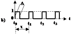 In realtà il clock è ottenuto da un oscillatore e presenta impulsi di periodo τ, frequenza f=1/t.e durata Δ non nulla (fig. 3.2b). Il rapporto d è detto anche duty cycle del segnale di clock.