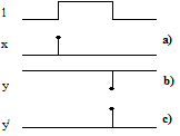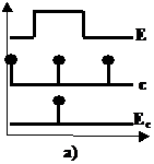 Per le sequenze puramente impulsive, essendo Nb=1 k=Nx, la codifica avviene con nessuna variabile a livelli (m=0) ed n=Nx variabili impulsive, donde anche il nome assegnato alla sequenza; ciascun impulso rappresenta separatamente un evento distinto e funge altresì da sincronizzatore. Ad esempio (fig. 8.3), per una macchina con 3 stati impulsivi ed unica base, si ottiene la codifica con 3 impulsi binari distinti xl, x2, x3