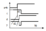 a) Elemento di ritardo puro; b) Macchina combinatoria con ritardo