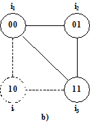 Se, ad esempio, in fig. 7.1a) fosse prevista anche la transizione i1→i3, si potrebbero alterare i dati del progetto originario, in modo che tale transizione avvenga come i1→i2→i4. Ovviamente, tale soluzione è possibile solo in casi particolari; con riferimento all'esempio, ciò si verifica se il nuovo stato di uscita f(i2) che così viene ad aggiungersi nella transizione il→i3 non influisce sul sistema nel quale la macchina è inserita, o perché uguale ad f(i1), o perché uguale ad f(i3) o perché indifferente sul comportamento del sistema.