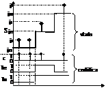 A titolo di esempio, in fig. 8.2 è mostrata la codifica per una macchina con Nx=Nb=3: sono adoperate 1 variabile impulsiva, c, e variabili a livello, bl e b2. Si noti la simultanea variazione da 0 a 1 delle due variabili a livelli: essa non da luogo ad alea trattandosi di sequenza impulsiva.