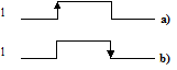 Gli schemi di cui sopra sono del tutto teorici; diverse sono le tecniche per ottenere l'impulso dalla variazione di livello. La più diffusa è quella di usare particolari apparecchiature sensibili ai fronti di variazione della variabile a livello (edge triggered, cfr. in seguito, reti sequenziali); per queste apparecchiature il fronte di variazione della variabile a livelli equivale ad un impulso (fig. 10.2). Esistono apparecchiature sensibili ai fronti di salita (variazione 0 positive edge triggered, fig. 10.2a) ed ai fronti di discesa (variazione 1 negative edge triggered, fig. 10.2b)